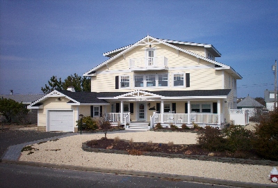 Addition and renovation to a existing one story single family dwelling with one car garage and storage. First floor has a guest room and office in the front of the dwelling with a bath room and pantry between these rooms and the large open sunken living space. The living space includes the kitchen with a Island, living area with a fireplace and the dining area which opens onto a large rear screened porch. There is a deck off of the living area. All living spaces have 10’- 6” ceilings with views of Barnegat Bay to the north. The second floor has two bedrooms in the front of the dwelling with a bath room and laundry room between the bay side master bed room suite and guest bedroom. The master bedroom has volume ceilings, large closet space, a master bath with his and her lavatories , tiled shower and whirlpool tub. Both the master bedroom and guest bedrooms have balconies accessed by french doors overlooking the Barnegat Bay. |
